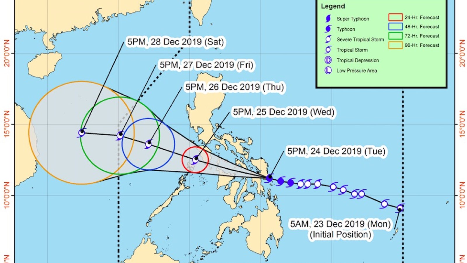 Forecast track of Typhoon Ursula Phanfone as of December 24 2019 2 pm. Posted 24 Dec. 2019 Visitors Guide.